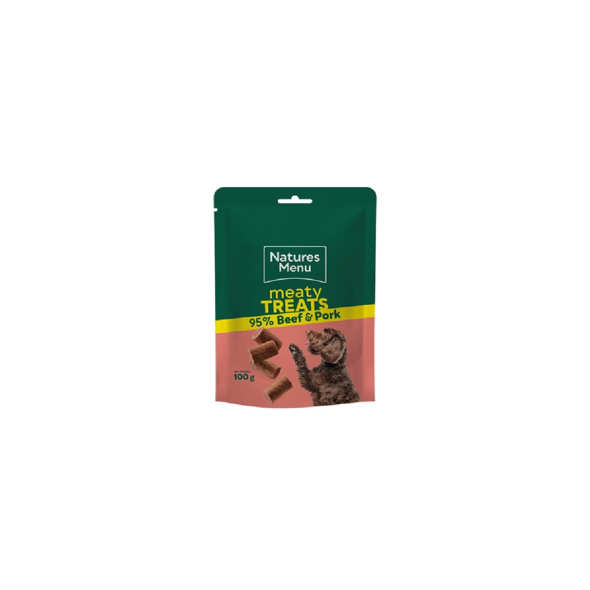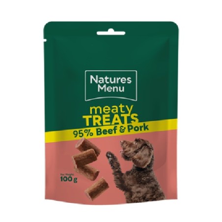 The ultimate real meat training treat. Made with 95% real beef and pork. An irresistible reward for dogs. Gluten free. Pack size 100g.