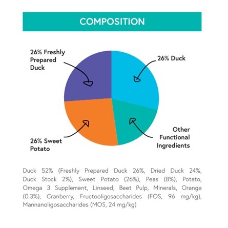 Duck is a lean, nutrient-dense source of protein and also provides nutrients such as iron, selenium, B vitamins and zinc which contribute towards general health and wellbeing. Why Orange? Orange is well-known for being rich in vitamin C, an anti-oxidant which can help support the immune system. Why Sweet Potato? Sweet potato is low in fat, and may also benefit digestive health as it is a rich source of dietary fibre