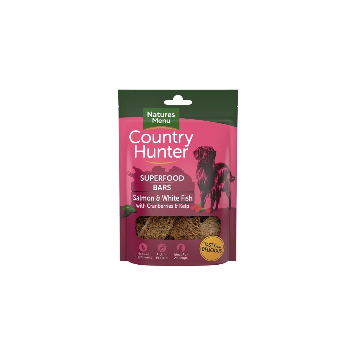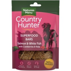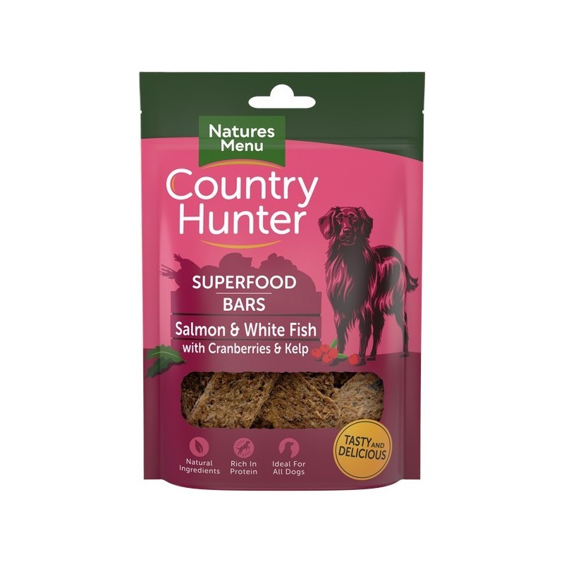These superfood bars use quality cuts of salmon and white fish with a natural mix of cranberries and kelp to create a nutritious treat full of protein and omegas. Gently air-dried to lock in all the goodness and flavour from the abundance of natural ingredients which provide a nutritionally balanced treat that your dog will love.