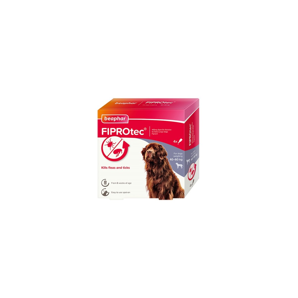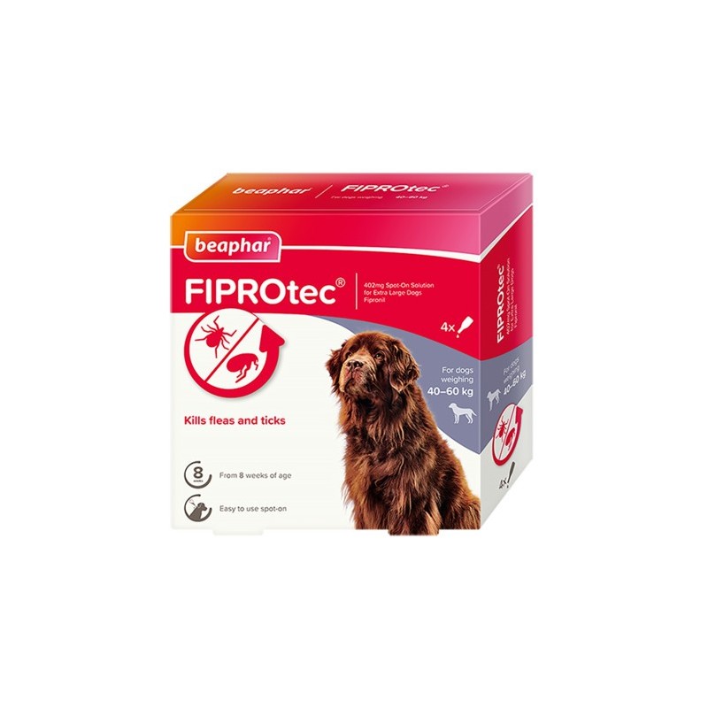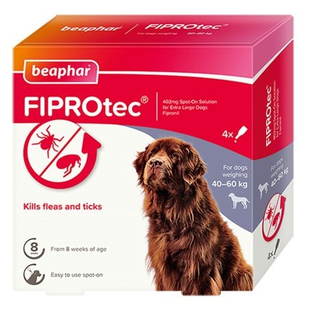 Fipronil Spot-On kills fleas for up to five weeks and ticks for up to four weeks. For dogs over 8 weeks of age and weighing more than 40kg. UK authorised veterinary medicine.
