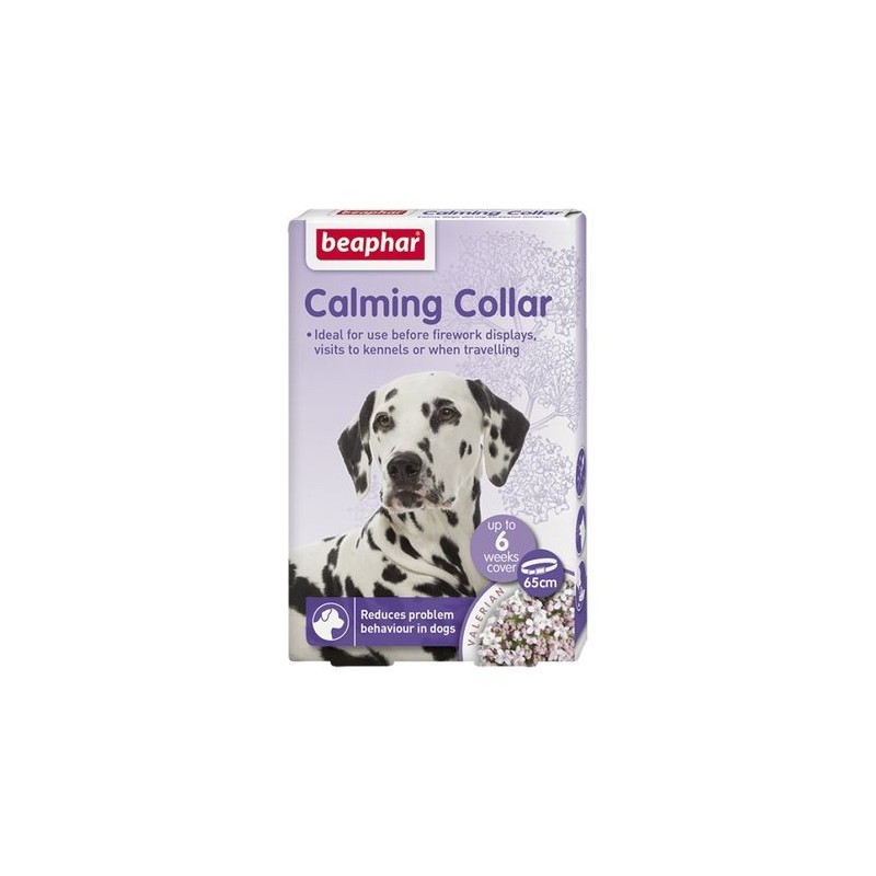 Beaphar Calming Collar for dogs effectively reduces problem behaviour arising from stressful situations in dogs of all breeds, sizes and ages. Using Valerian and Lavender which are often used in human healthcare.