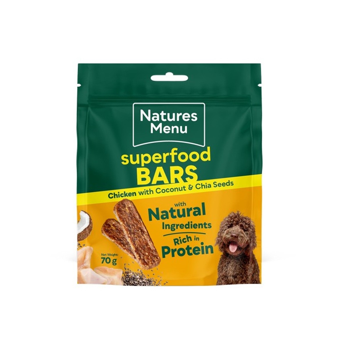 Superfood bars use quality chicken pieces and a natural blend of coconut and chia seeds plus other wholesome vegetables for a nutritious and rich in protein snack.