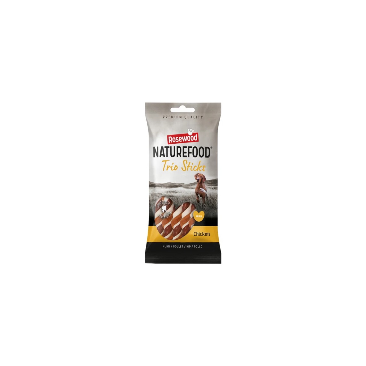 Brushing teeth is a party with Rosewood's delicious Trio Sticks! The chicken strips are co-wrapped in the beef skin, so your dog can chew on the sticks for extra long. This makes the sticks irresistibly tasty, of course, but also helps care for the teeth. Chewing on the beef skin prevents tartar formation and gum disease. So a tasty and responsible snack! We didn't just think about the teeth, but also your dog's tummy. In fact, this recipe has no added grains and gluten for better digestibility. And of course we haven't added any artificial colourants, aromas and flavourings to it either! This small variant is ideal for smaller four-legged friends.