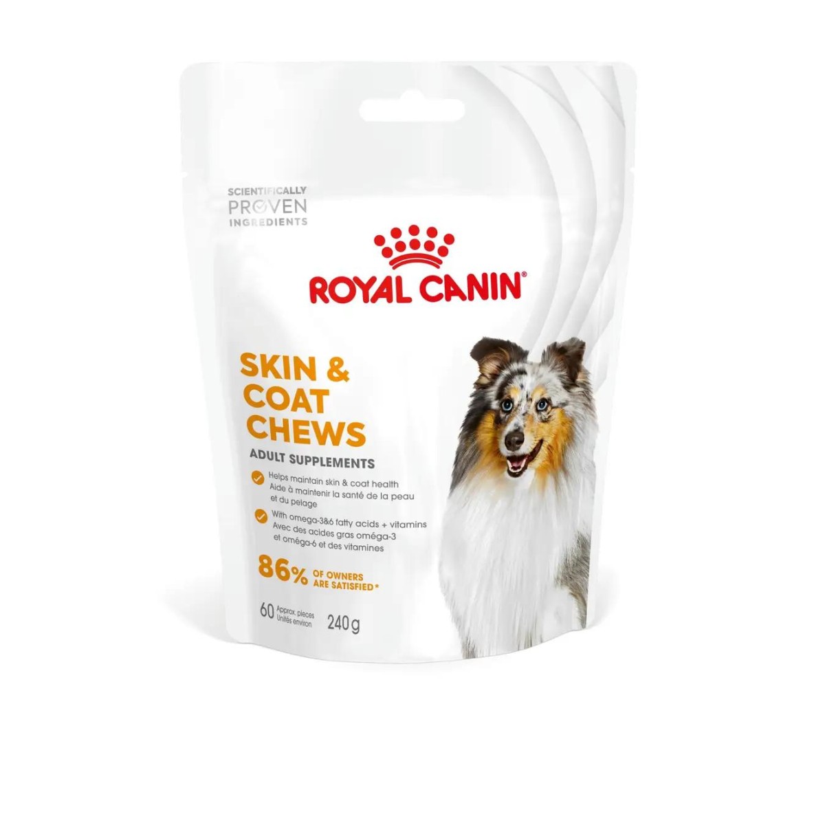 Suitable for adult dogs, ROYAL CANIN® Skin & Coat Adult Chews are formulated by veterinarians and approved by dogs. These supplements feature a science-driven blend of ingredients backed by over 50 years of research and observation in canine nutrition.