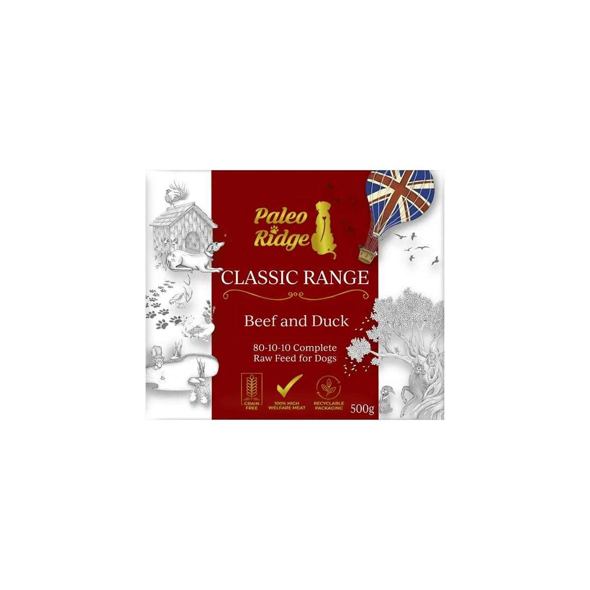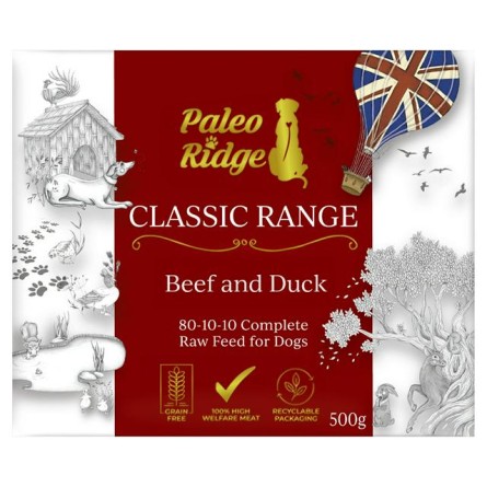 Classic Beef and Duck is a chunky, complete 80:10:10 raw dog food, minced for your convenience and packaged in compostable and recyclable 1kg packs. This Biologically Appropriate Raw Food (BARF) is made from high-welfare, British beef and duck.