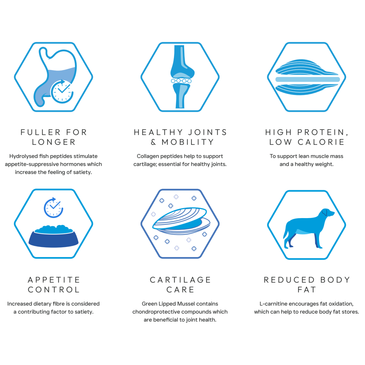 Collagen peptides can improve signs of canine osteoarthritis and provide an excellent source of building blocks for cartilage tissue, important for mechanical functionality.