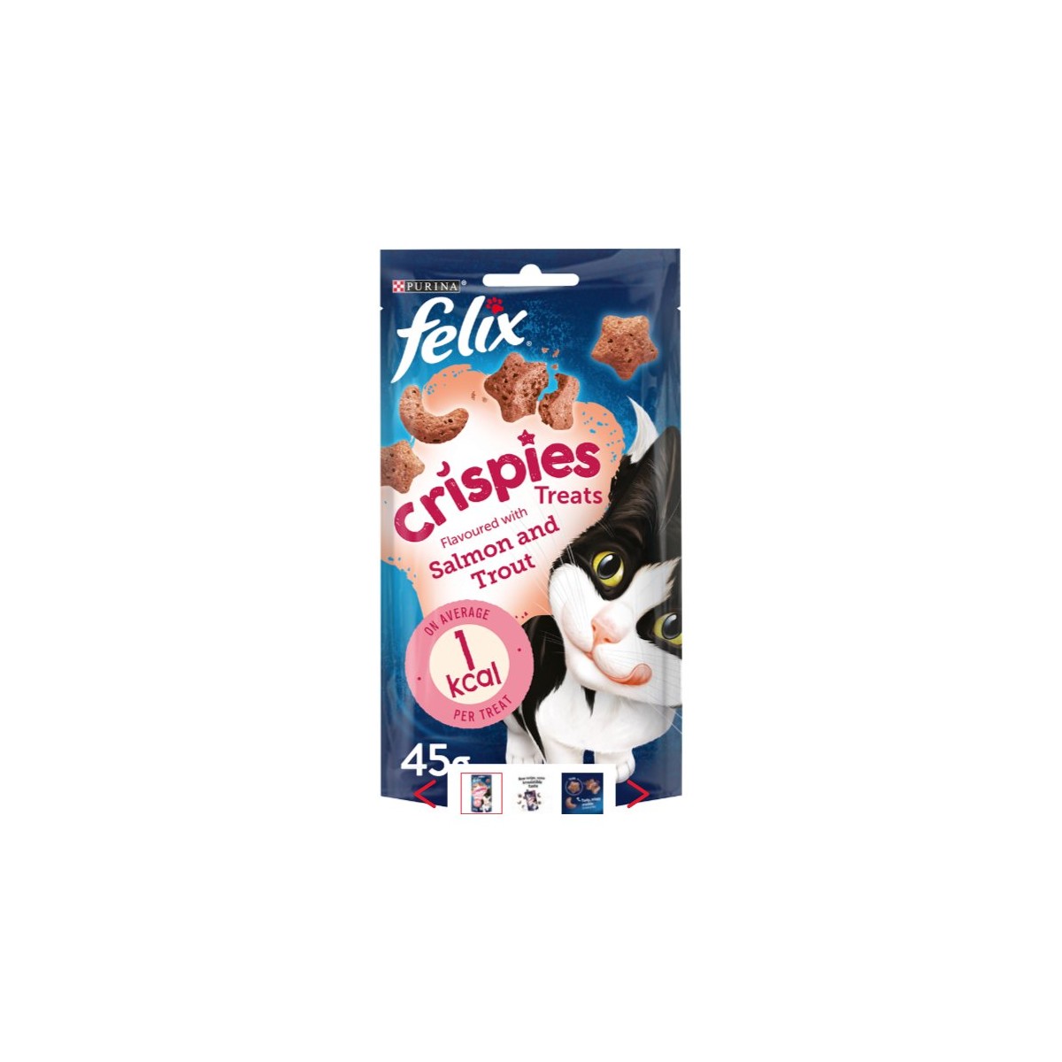 We're sure your cat will love our tasty FELIX CRISPIES flavoured with Salmon & Trout cat treats as they're full of delicious flavours and irresistible textures.