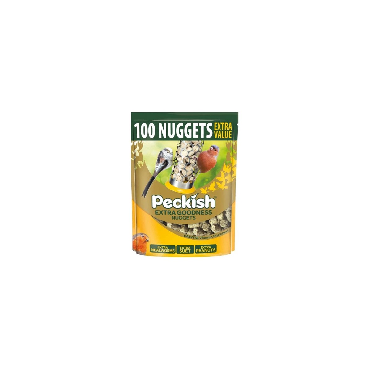 Peckish Extra Goodness Nuggets are enriched with the goodness of CalVita. A vitamin enriched pellet unique to Peckish that's tailor made for wild birds well-being. With every peck birds will benefit, feeding them the best quality to keep them healthy and happy. Find out more about our CalVita® Vitamin Mix.