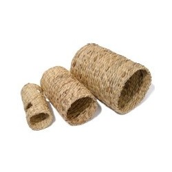 Made from 100% natural water hyacinth and rattan material with no glue, plastic or metal. It is perfect for pets to play in, sleep in and chew. It has an extra deep base for deep filling with litter so pets can tunnel and burrow. Sold singly.