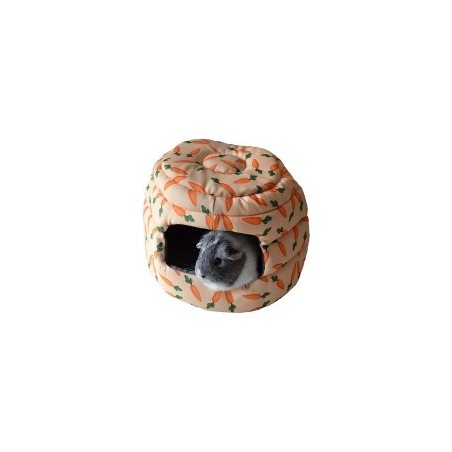 Snuggles range: Carrot print. All designs feature tough, durable polyester fabrics. The "Bee Hive" bed doubles up as a hooded bed or snuggle cup. All are sized for Guinea pigs, ferrets, rats and dwarf rabbits. Suitable for hand-washing only.